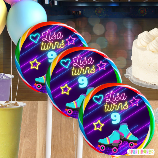 Personalized Skating Lollipop Round Stickers | Custom Glow Party Favor Labels