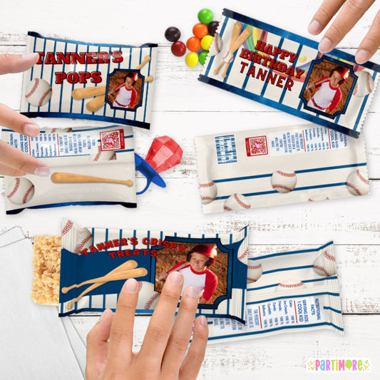 Custom Baseball Candy Bar Wrappers | Personalized Sports Party Favors | Sports Birthday Decorations