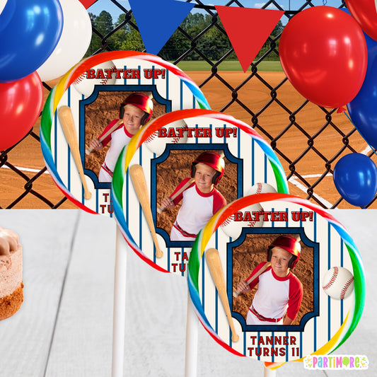 Personalized Baseball Lollipop Round Stickers | Custom Sports Party Favors