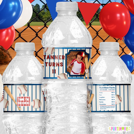 Personalized Baseball Water Bottle Labels | Custom Sports Birthday Party Favor Stickers