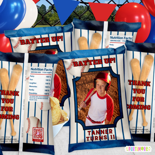 Personalized Baseball Chip Bags | Custom Sports Birthday Party Favor Snack Bag Wrappers