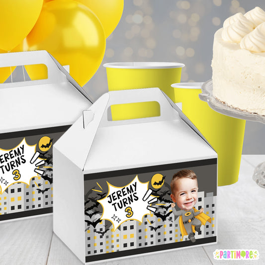 Dynamic Night Hero Gable Box Labels | Personalized Bat Superhero Party Stickers