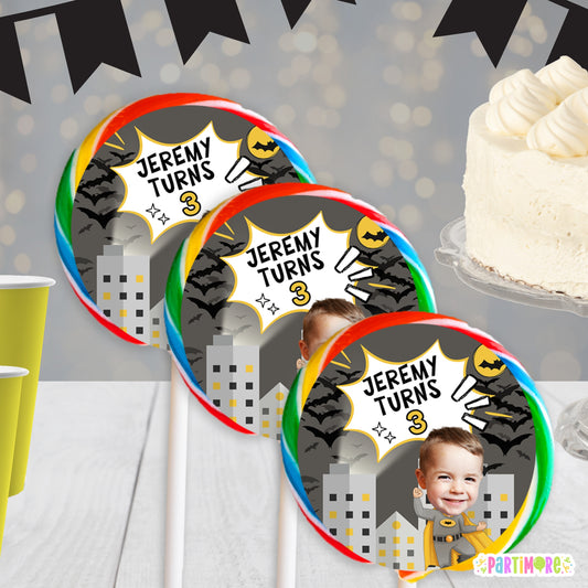 Bat Birthday Lollipop Labels | Custom Bat Superhero Party Favor Stickers