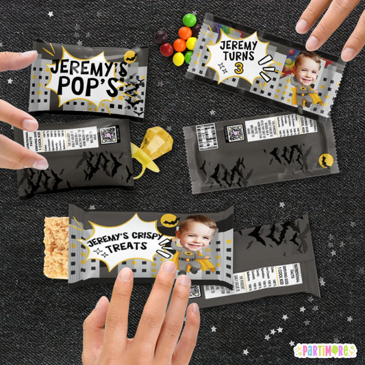 Comic Book Candy Wrapper Party Favors | Custom Gotham-Inspired Treats