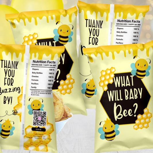 Bee Baby Shower Chip Bags Party Favor Goodie Bags, Little Bumble Bee Girl Boy