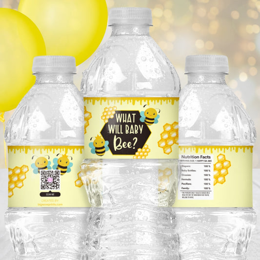 Bumble Bee Baby Shower Water Bottle Labels, What Will Baby Bee, Gender Neutral, Girl Boy, Twin Baby Shower