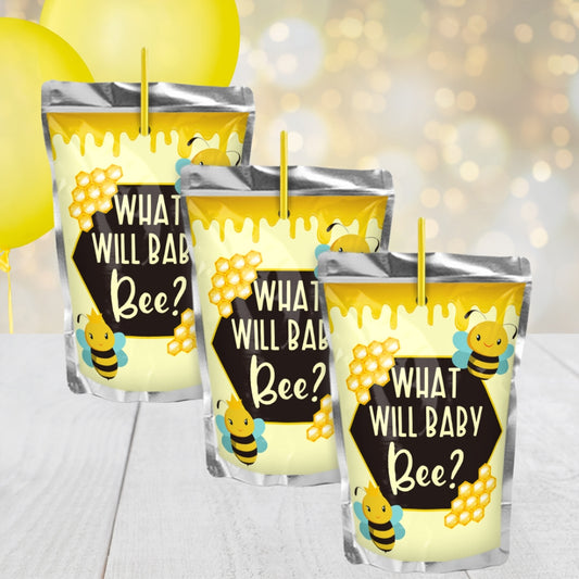 Bumble Bee Baby Shower Juice Pouch Labels, What Will Baby Bee Gender Reveal, Gender Neutral Baby Shower Sticker Decorations