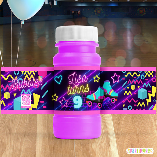 Personalized Glow Bubble Bottle Labels | Skating Party Stickers