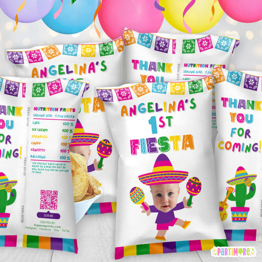 Fiesta Chip Bags | Personalized Cinco De Mayo Papel Decorations | 3rd Birthday Party Favors Snack Bags