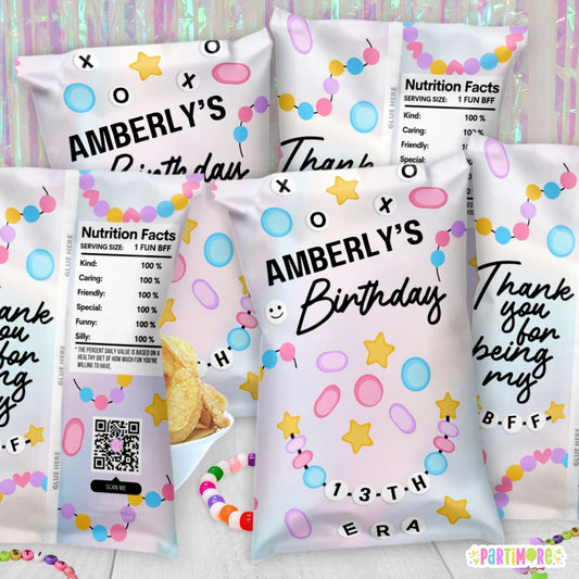 Taylor Inspired Friendship Bracelet Birthday Party Chip Bags – Custom Printed Favor Wrappers