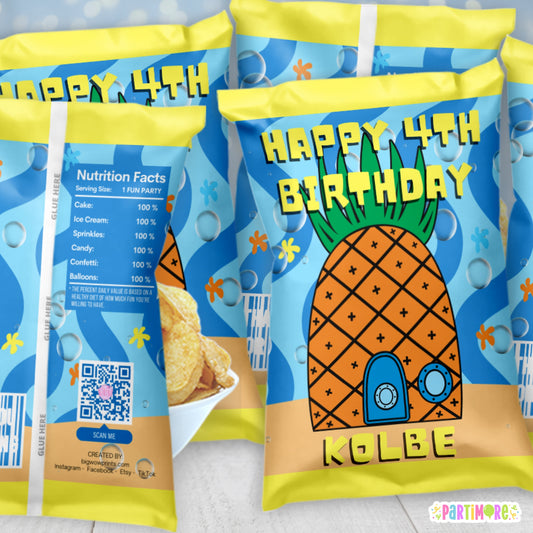 Personalized Pineapple Chip Bag Labels | Tropical Underwater Party Favors