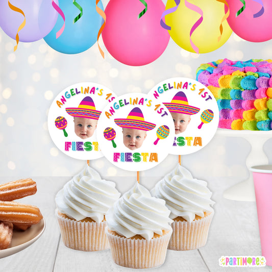 Custom Girl Fiesta Cupcake Toppers | Personalized Cinco De May Party Favors | Three-esta Birthday Decorations