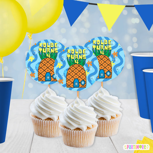 Personalized Pineapple Cupcake Toppers | Underwater Tropical Birthday Decorations
