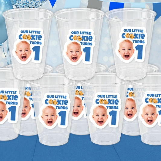 Cookie Birthday Party Cups, Personalized Birthday Cups With Picture, Cookie Birthday Cups, Boys First Birthday Party Decorations