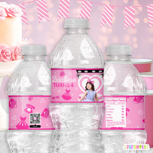 Glam Pink Fashion Doll Water Bottle Labels | Personalized Party Drink Stickers