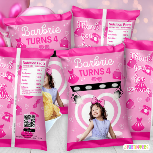 Chic Fashion Doll-Inspired Chip Bags | Personalized Pink Party Favors | Snack Bags | Gift Bags