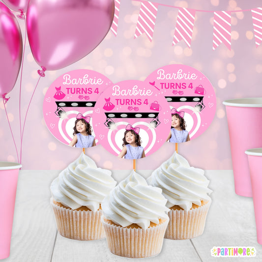Pink Fashion Doll Cupcake Toppers | Personalized Glam Birthday Decorations