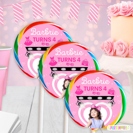 Runway Glam Lollipop Stickers | Custom Pink Fashion Party Labels