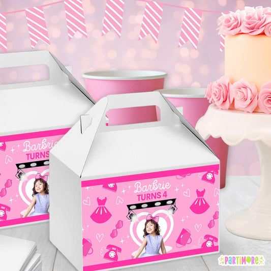 Glam Fashion Doll Gable Box Labels | Personalized Pink Party Favor Stickers