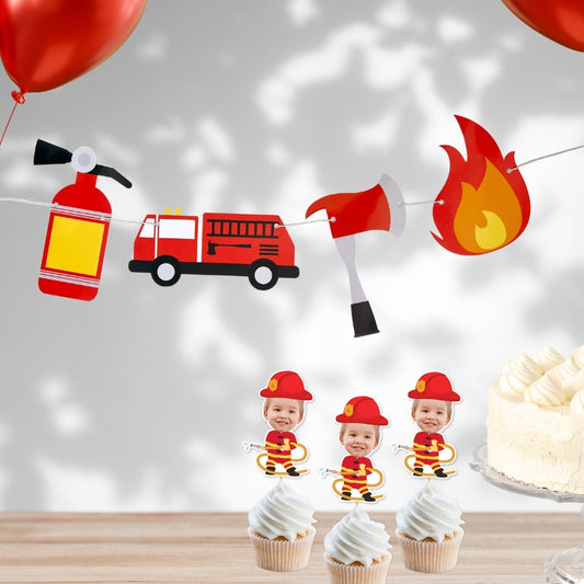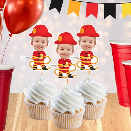 Fire Truck Cupcake Toppers, Firefighter Birthday Party Decorations, Personalized Face Cupcake Toppers, Firefighter Graduation, Water Hose, Fireman Hat