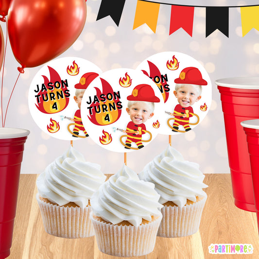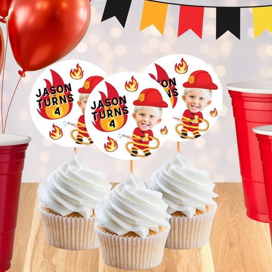 Personalized Firefighter Birthday Cupcake Toppers Customized With Face Name And Age