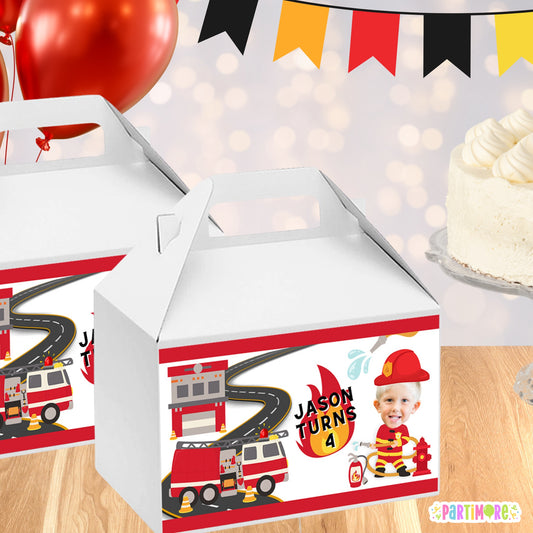 Custom Firefighter Gable Box Stickers | Personalized Firetruck Birthday | Firefighter Birthday Party Favors