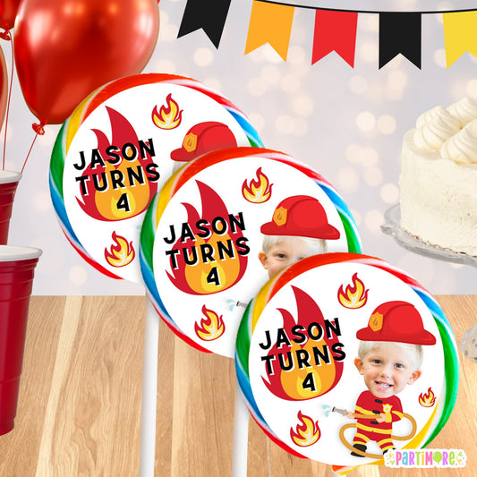 Personalized Firefighter Lollipop Stickers | Firetruck Party Favor