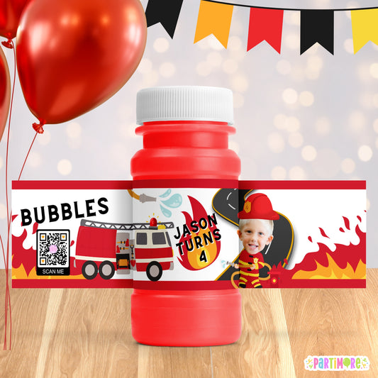 Custom Firefighter Bubble Labels | Personalized Firetruck Birthday Party Favors | Fireman Party Favor Stickers