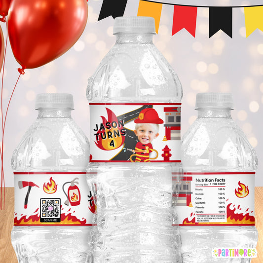 Custom Firefighter Water Bottle Labels | Personalized Firetruck Birthday Party Favors and Supplies