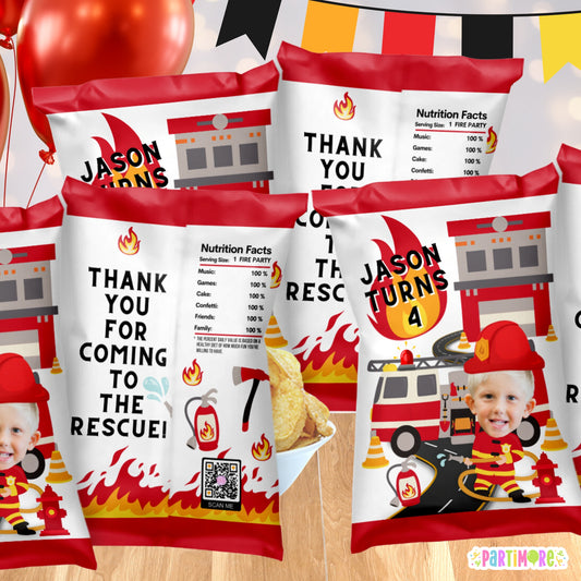 Custom Firefighter Chip Bags | Personalized Firetruck Birthday Party Favor Snack Bags | Fireman Birthday Ideas