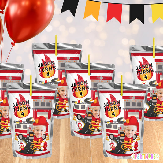 Personalized Firefighter Juice Pouch Labels |Custom Firetruck Birthday Party Decor