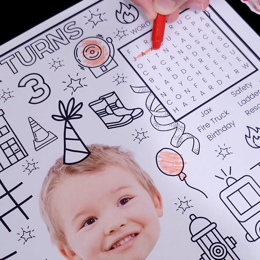 Firefighter Coloring Placemats, Personalized Fire Truck Birthday Party Decorations, Fire Station Party Favors