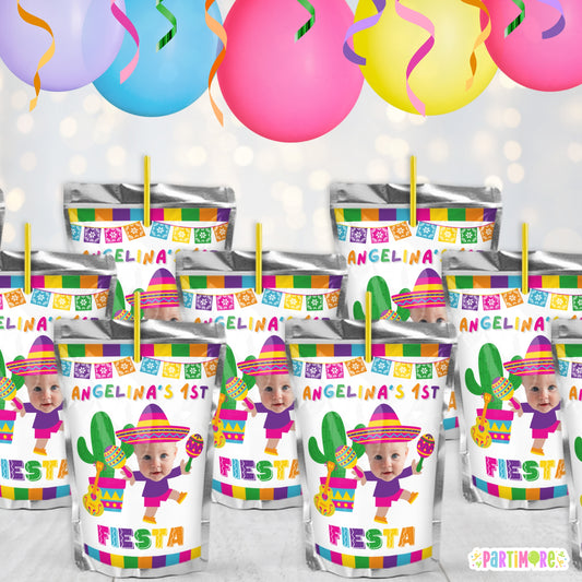 Girls Fiesta Juice Pouch Labels | Personalized 3rd Birthday Party Decorations | Three-esta Stickers