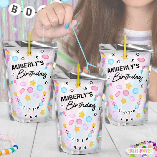 Friendship Bracelet Birthday Juice Pouch Labels – Personalized Party Drink Stickers