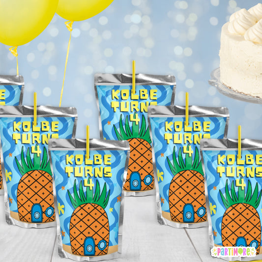 Personalized Pineapple Juice Pouch Labels | Nautical Birthday Party Favors