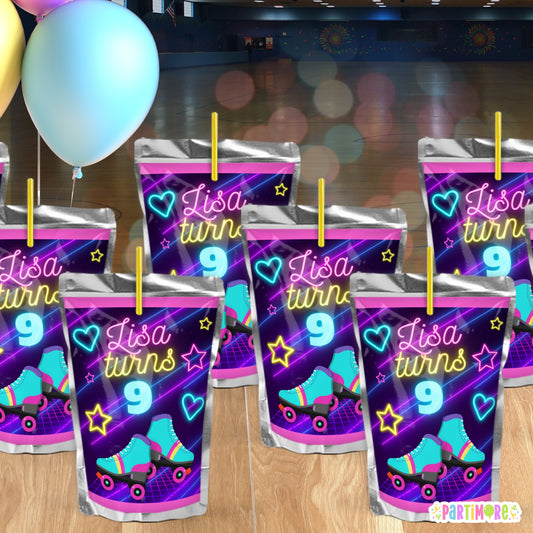 Custom Skating Juice Labels | Personalized Neon Glow Birthday Drink Stickers
