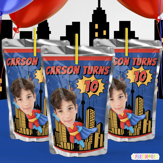Custom Hero Juice Labels | Personalized Super Birthday Drink Stickers