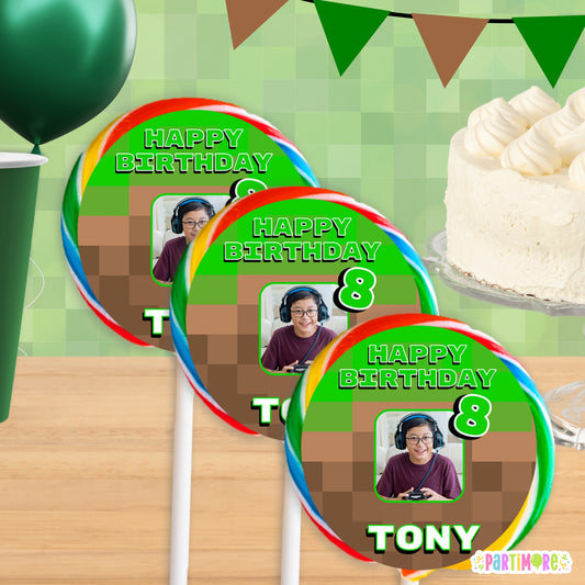 Personalized Pixel Gamer Birthday Stickers | Custom Gaming Party Favor Labels