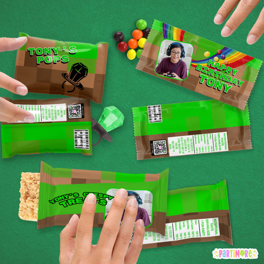 Custom Gamer Candy Wrappers | Personalized Pixel Game Birthday Party Favors | Gamer Party Bags