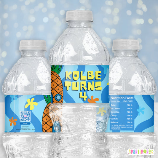 Personalized Pineapple Water Bottle Labels | Tropical Party Drink Decorations