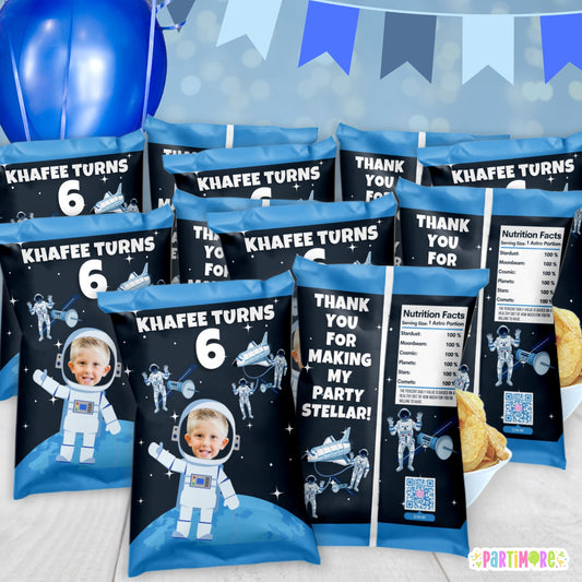 Personalized Outer Space Chip Bag Party Favors | Custom Astronaut Snack Wrappers for Kids’ Adults' Space Birthday