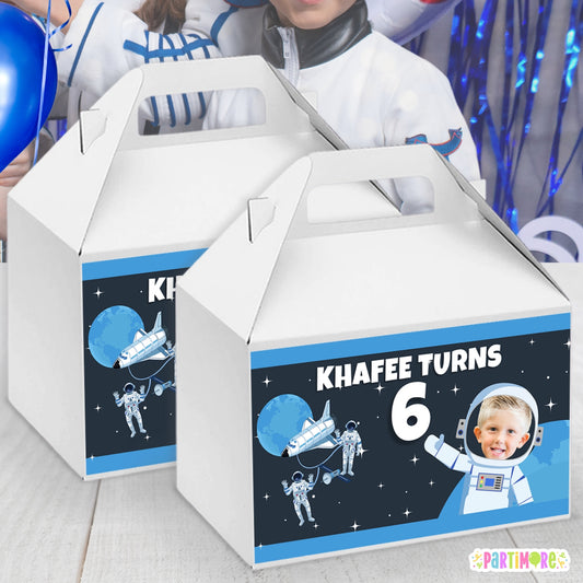 Personalized Outer Space Gable Box Label Stickers | Custom Astronaut Themed Party Box Sticker