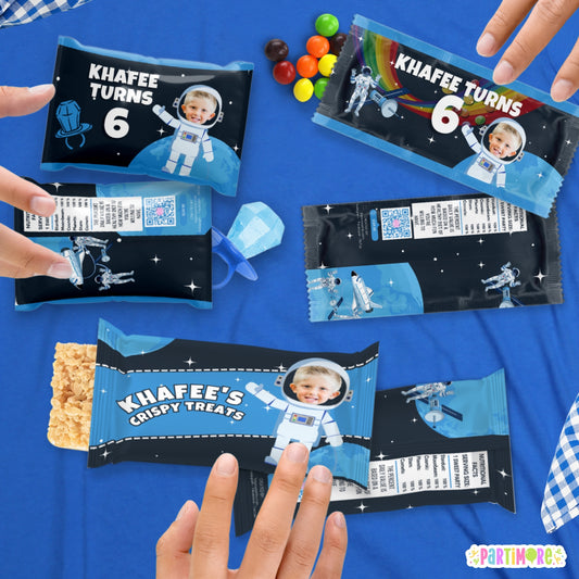 Personalized Outer Space Candy Bar Wrappers | Custom Astronaut Birthday Party Favors