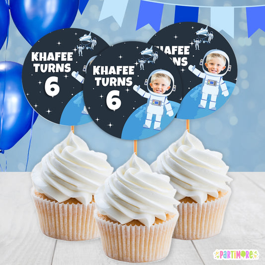 Personalized Outer Space Cupcake Toppers | Custom Astronaut Birthday Party Decorations