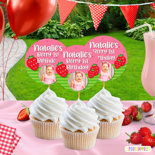 Strawberry Cupcake Toppers | Personalized Berry Sweet Birthday Decor