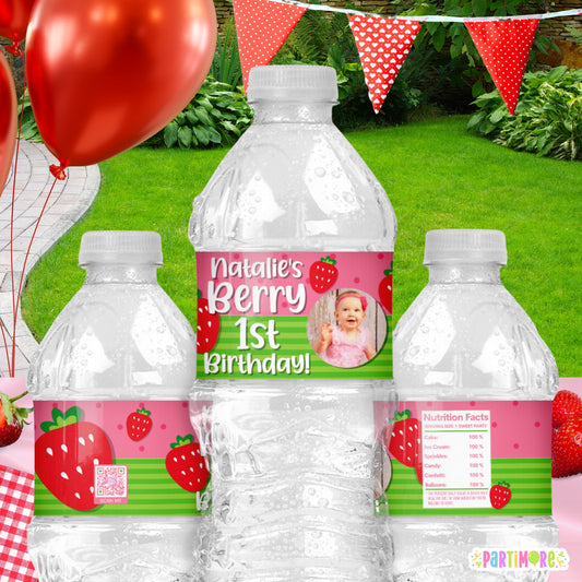 Strawberry Water Bottle Labels | Personalized Berry First Birthday Favors