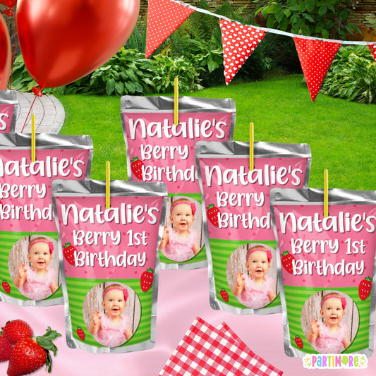 Strawberry Juice Pouch Labels | Personalized Berry Sweet Party Favors