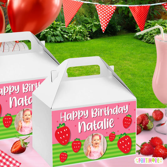 Personalized Strawberry Gable Box Labels | Berry Sweet Party Favors