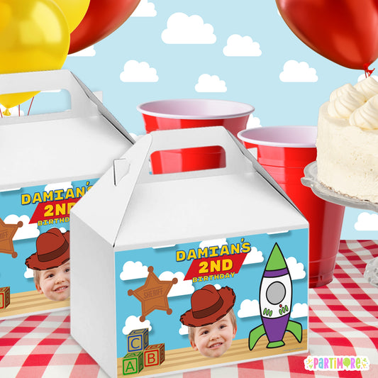 Custom Space Cowboy Gable Box Labels | Two Infinity Birthday Favors
