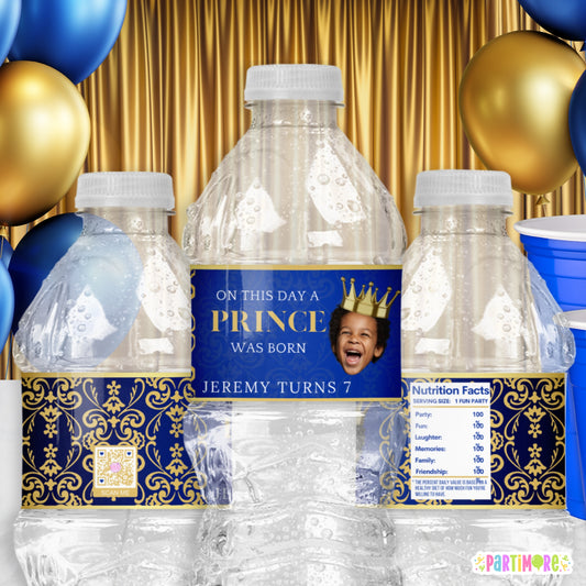 Elegant Royal Water Bottle Labels | Personalized Prince Party Stickers